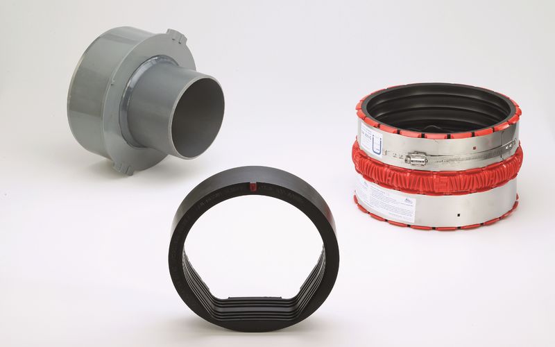Voor de verbinding van kunststofbuizen met ronde betonnen buizen met een nominale doorlaat van DN 250 tot 800 is en adapter beschikbaar, die het aanzienlijke verschil in dikte van de buiswanden compenseert. Voor de verbinding van kunststofbuizen met ronde betonnen buizen met een nominale doorlaat DN 150 is er een speciale oplossing in de vorm van een kleine adapter.